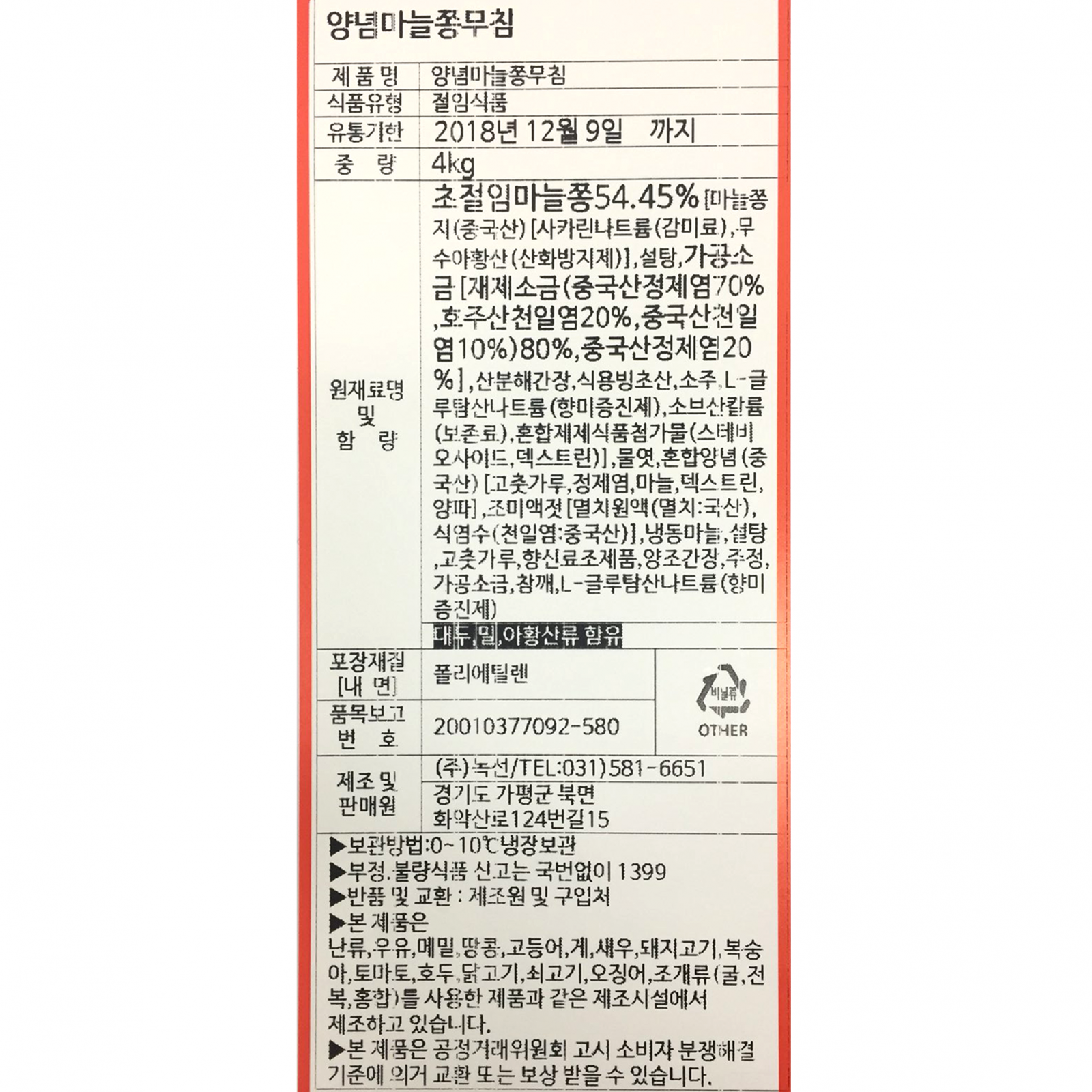 녹선 양념마늘쫑(4Kg/EA) 업소용 반찬
