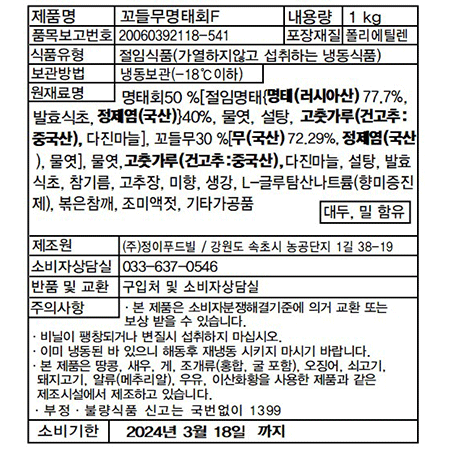 정이푸드빌 꼬들무명태회무침(1Kg/EA) 업소용 반찬