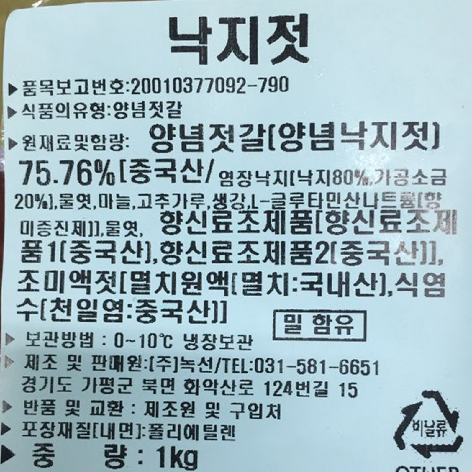 녹선 양념낙지젓(1Kg/EA) 업소용 반찬 이미지