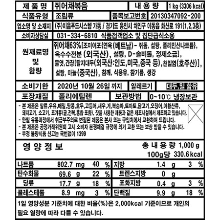 이음푸드 간장쥐어채볶음(63% 1Kg/EA) 업소용 반찬