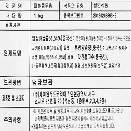 반찬단지 마늘쫑무침(마늘쫑56.54% 1Kg/EA) 업소용 반찬