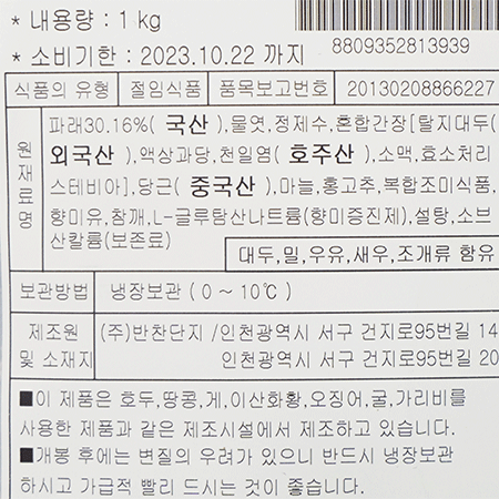 반찬단지 파래무침(NEW_선별파래30% 1Kg/EA) 업소용 반찬