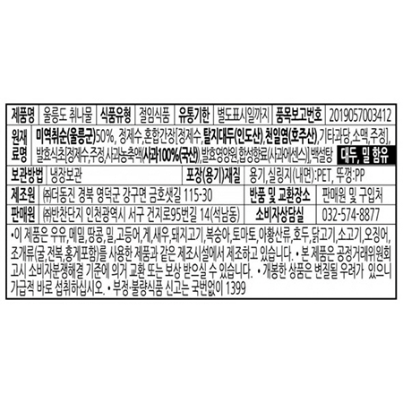 반찬단지 울릉도취나물(취순_50% 1Kg/EA) 업소용 반찬