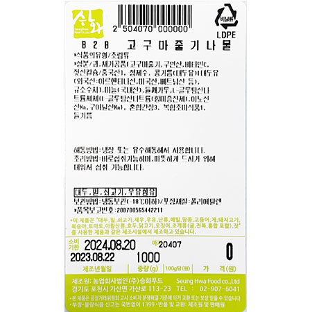 승화푸드 고구마줄기나물볶음(기획상품 1Kg/EA) 업소용 반찬