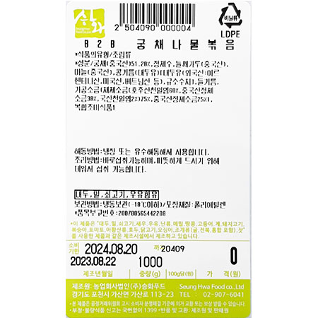 승화푸드 궁채나물볶음(기획상품 1Kg/EA) 업소용 반찬