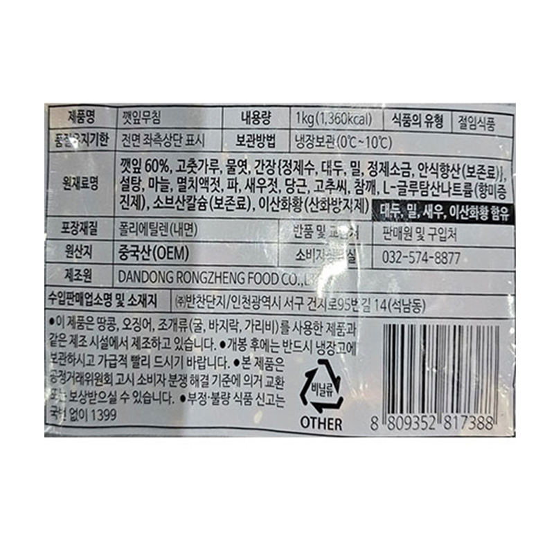 반찬단지 양념깻잎무침(깻잎60%_행복한상차림 1Kg/EA) 업소용 반찬