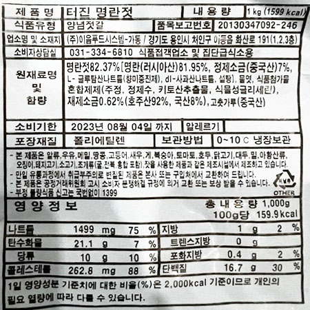 이음푸드 터진명란젓(1Kg/EA) 업소용 반찬