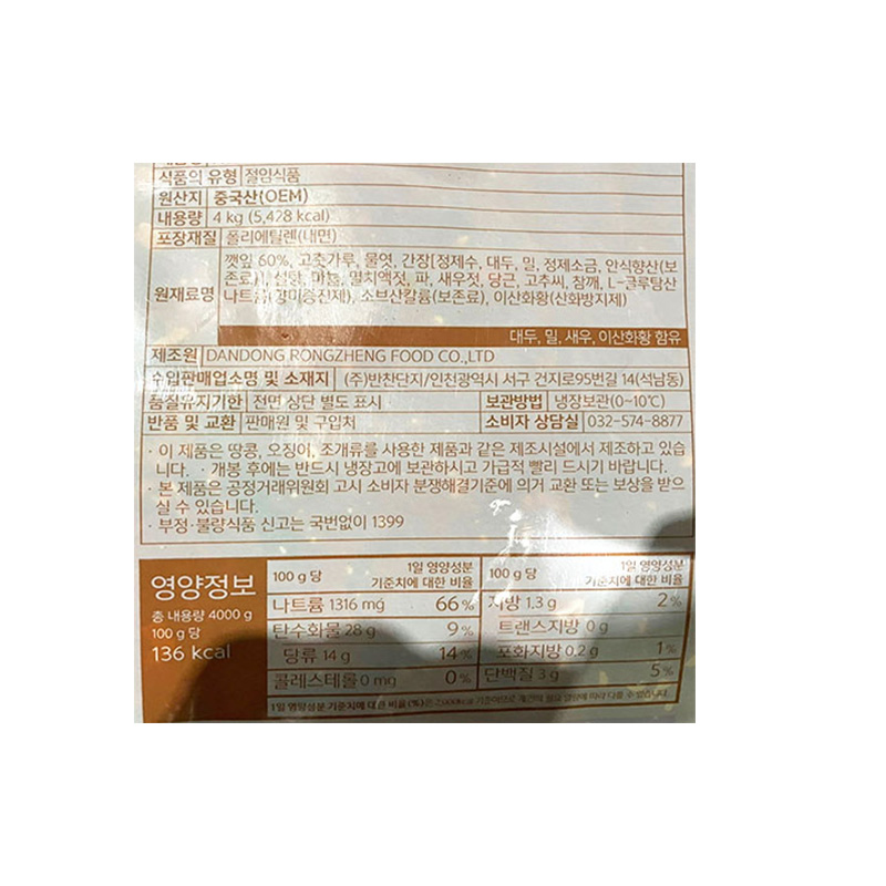 반찬단지 깻잎무침(양념 4Kg/EA) 업소용 반찬