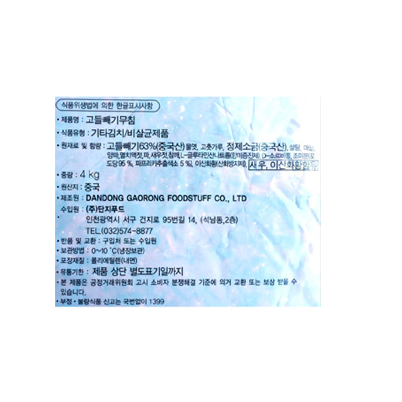 반찬단지 고들빼기무침(NEW 4Kg/EA) 업소용 반찬 이미지