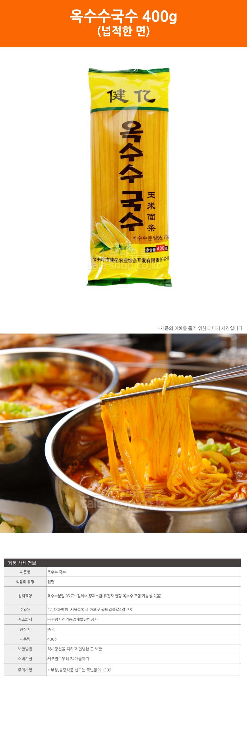 옥수수국수 400g 넙적한면 온면 마라탕 훠궈 사리