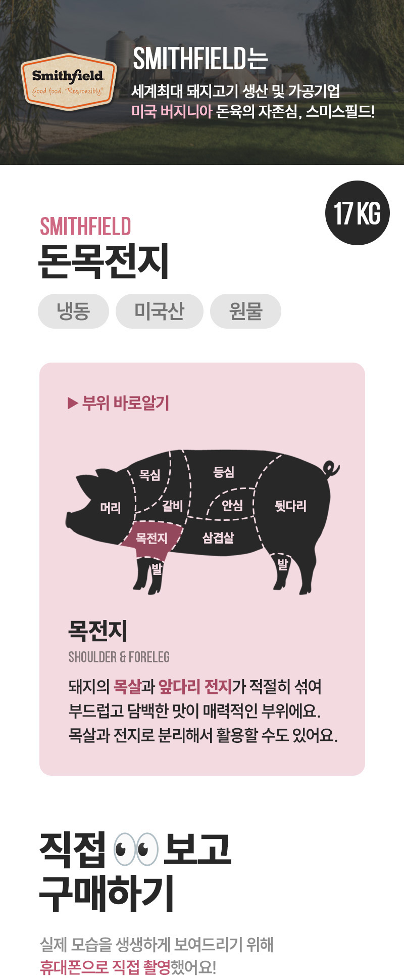 ♥정육특가♥ SMITHFIELD 미국 돈목전지(최대 ~25.5kg/BOX) 스미스필드 비정량