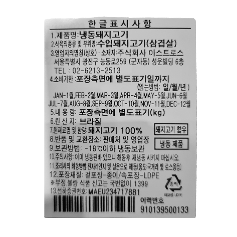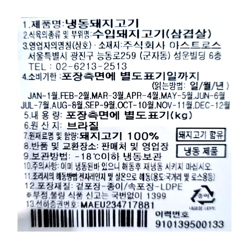 ♥정육특가♥ (kg당9,150원) AURORA 브라질산 삼겹살(최대 ~37.5kg/BOX) 박스육 오로라