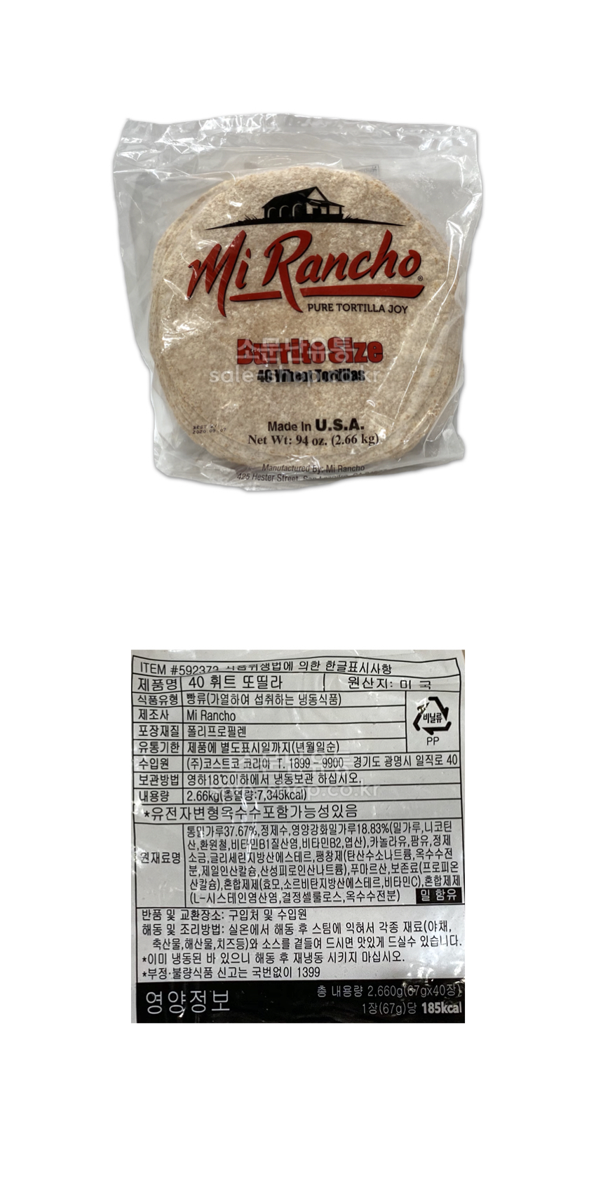 코스트코 통밀 또띠아 2.66kg(40장) (냉동)