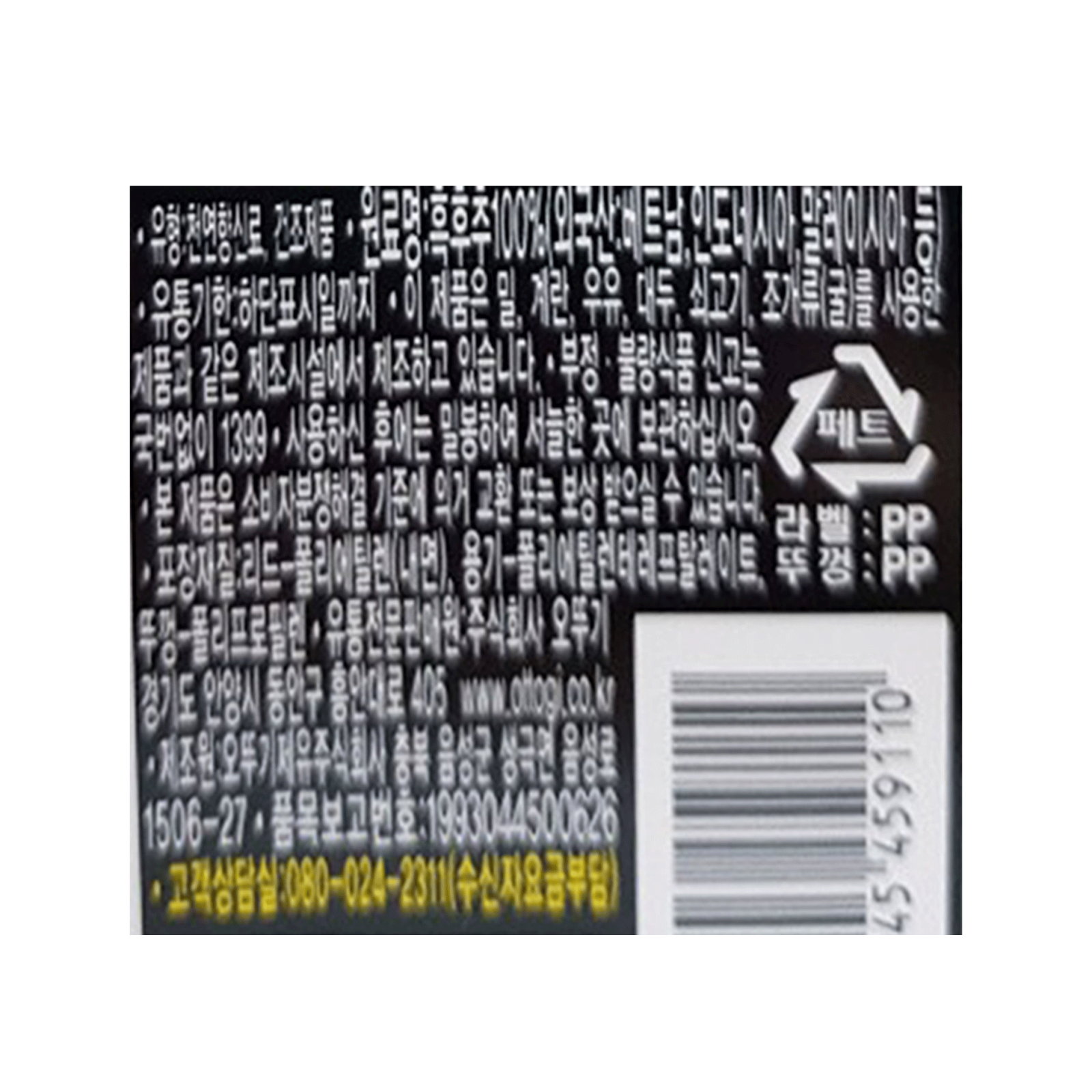 원재료명 및 함량
