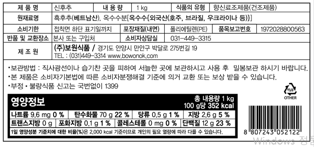 원재료명 및 함량