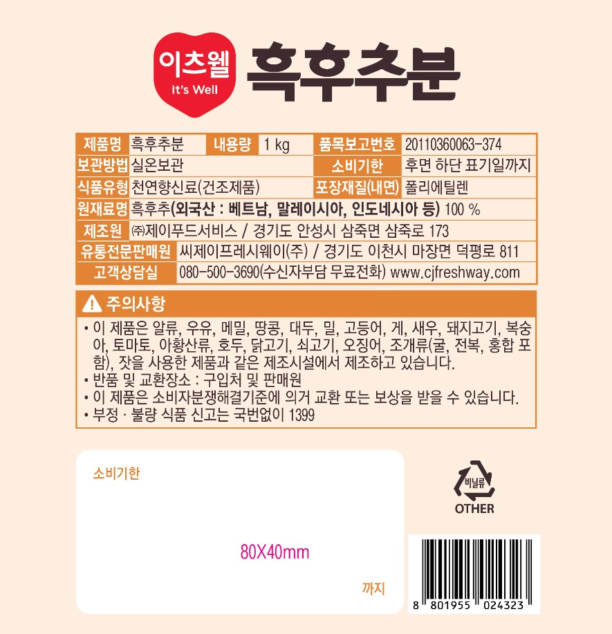 이츠웰 흑후추분(1Kg/EA) 이미지