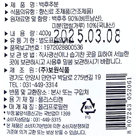 오케이 백후추분말(기획_PET_90% 400g/EA)