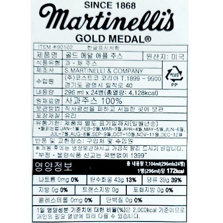 골드메달 사과주스(296ml*24입_둥근 296g/EA)