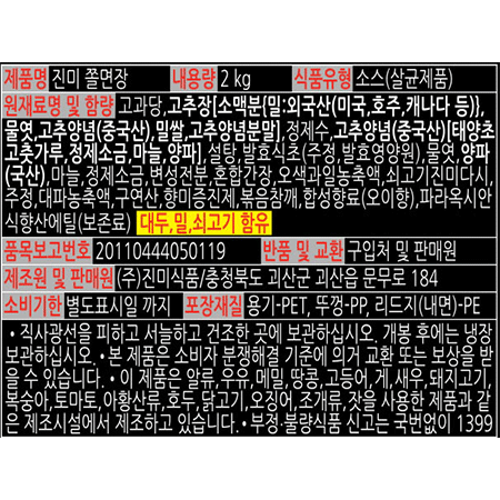 진미식품잘되는맛집 쫄면장(2Kg/EA)