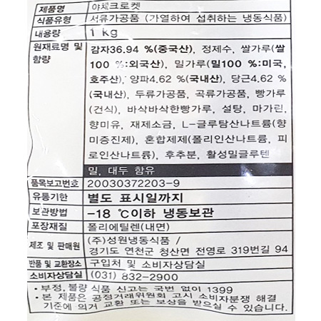 성원냉동식품 야채고로케(34±2개입 1Kg/EA)