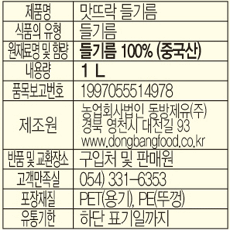 맛뜨락 들기름(PET_1L 1Kg/EA) 이미지