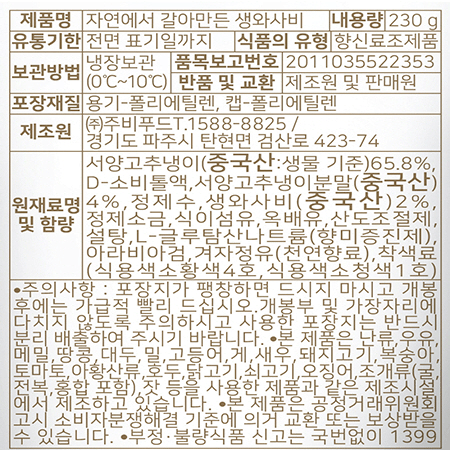 주비푸드 자연에서갈아만든생와사비(NEW 230g/EA)