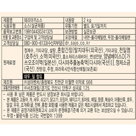 본 제품은 제품입고일별 유통기한 또는 품질유지기한이 상이하므로, 필요시 고객센터로 문의하여 주십시오. 제조일로부터 180까지