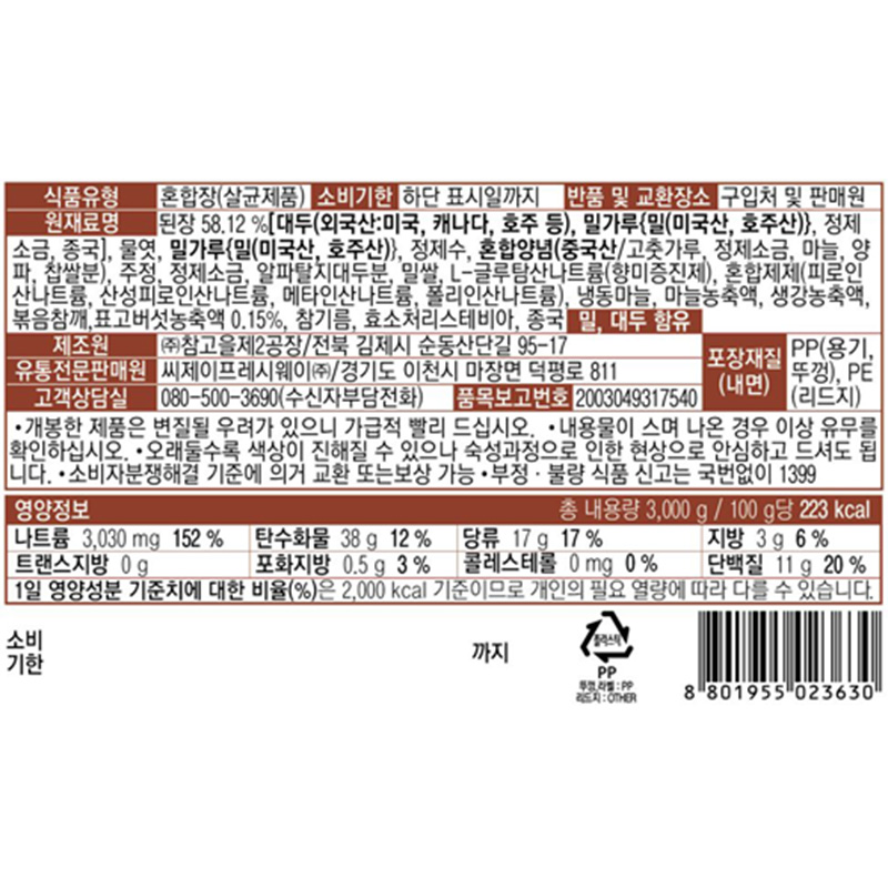 이츠웰 양념쌈장(골드 3Kg/EA) 이미지