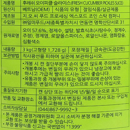 일미 후레쉬오이피클(슬라이스 3Kg/EA) 업소용 반찬 이미지