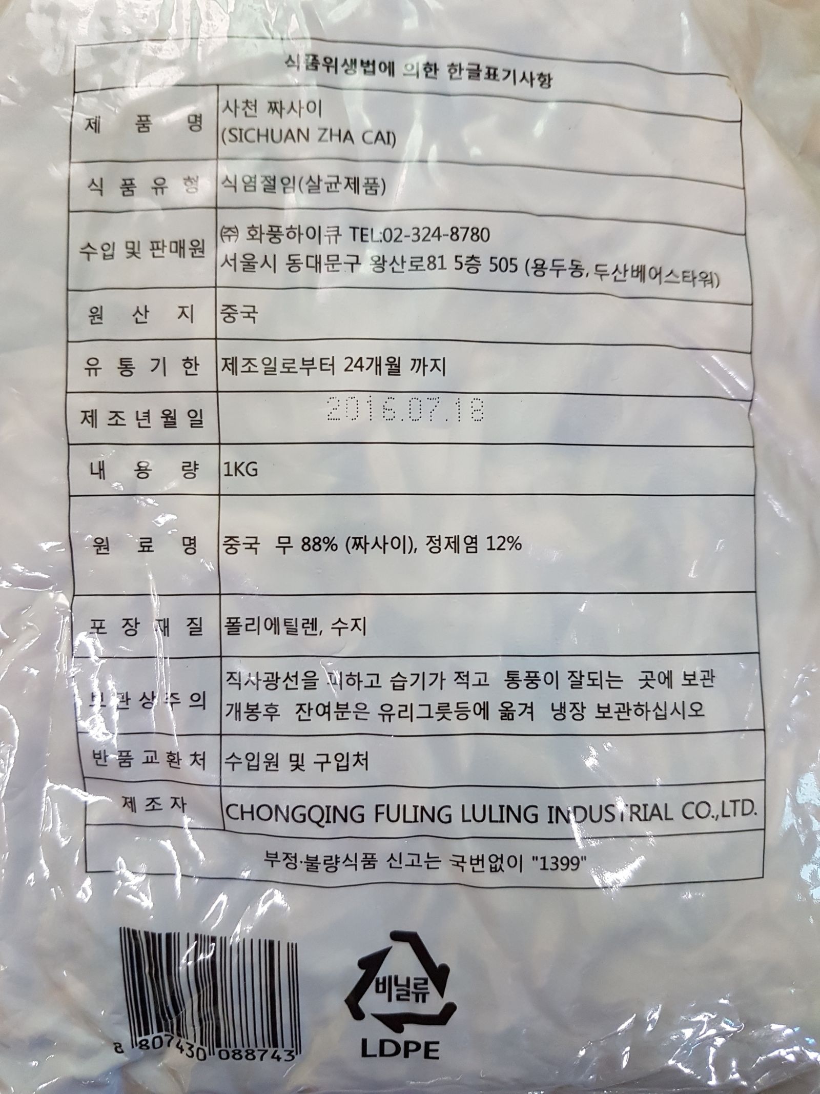 화풍 짜차이(1Kg/EA) 업소용 반찬 이미지