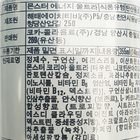 코카콜라 몬스터에너지(355ml_울트라 355g/EA)