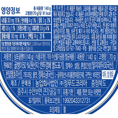 본 제품은 제품입고일별 유통기한 또는 품질유지기한이 상이하므로, 필요시 고객센터로 문의하여 주십시오. 제조일로부터 1095까지
