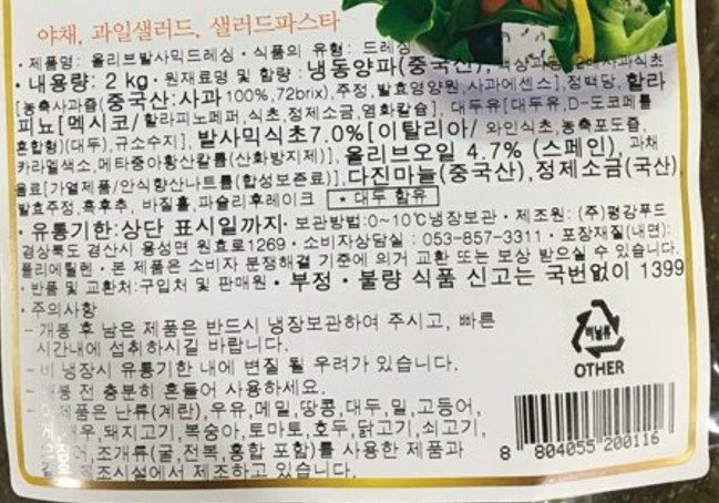 원재료명 및 함량