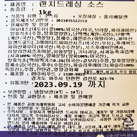 주비푸드 랜치드레싱소스(1Kg*10) 이미지