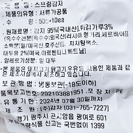 삼원 회오리감자(50g*10입 500g/EA) 이미지