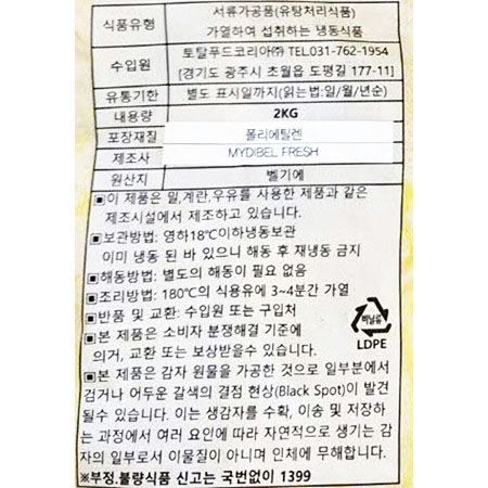 마이디벨 냉동감자(테이터잼 2Kg/EA)