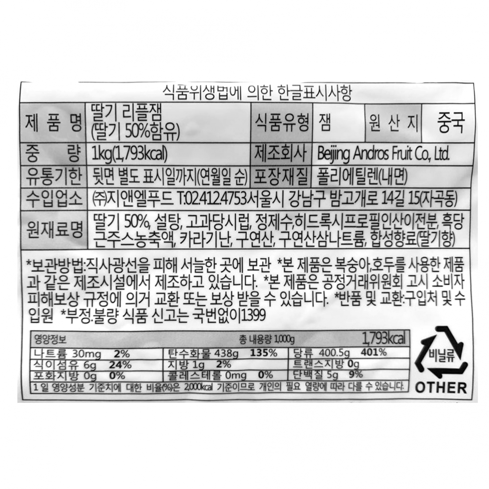 앤드로스 딸기리플잼(1Kg/EA)