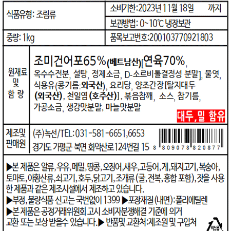 녹선 명엽채볶음(조미건어포65%_기획상품 1Kg/EA) 업소용 반찬