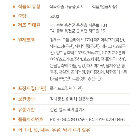 본 제품은 제품입고일별 유통기한 또는 품질유지기한이 상이하므로, 필요시 고객센터로 문의하여 주십시오. 제조일로부터 365까지