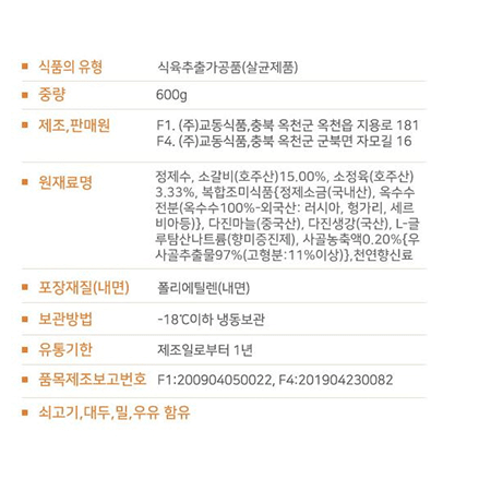 본 제품은 제품입고일별 유통기한 또는 품질유지기한이 상이하므로, 필요시 고객센터로 문의하여 주십시오. 제조일로부터 365까지