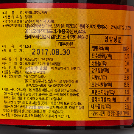 새댁표 고추맛기름(1.5L 1.375Kg/EA)