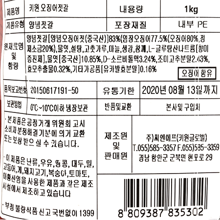 오늘의밥상 오징어젓갈(1Kg/EA) 업소용 반찬 이미지