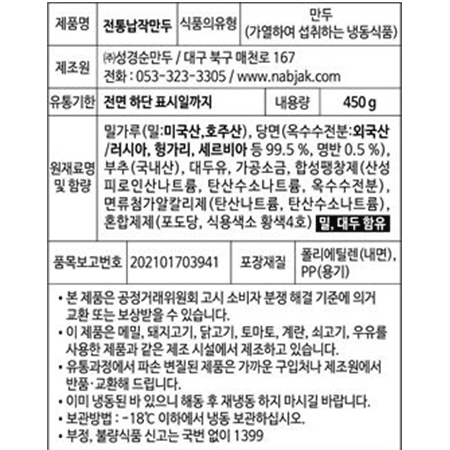 성경순만두 대구전통납작만두(35개입 450g/EA)