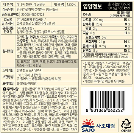 애니쿡 철판사각군만두(50입내외 1.25Kg/EA)