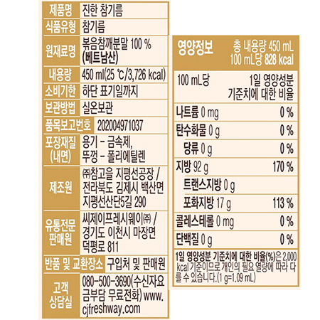 이츠웰 참기름(캔_450ml 450g/EA) 이미지