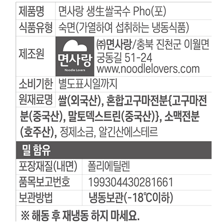 면사랑 생쌀국수PHO(1Kg/EA)