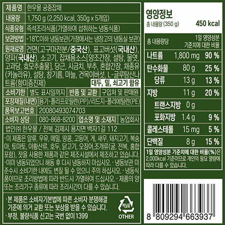 한우물 궁중잡채(소고기_350g*5입 1.75Kg/EA)