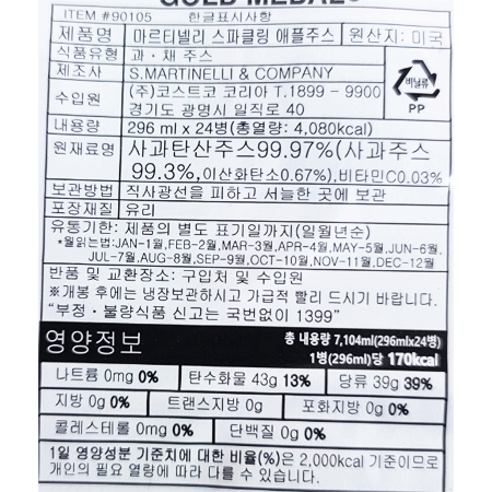 골드메달 사과주스(스파클링_296ml*24입 296g/EA)