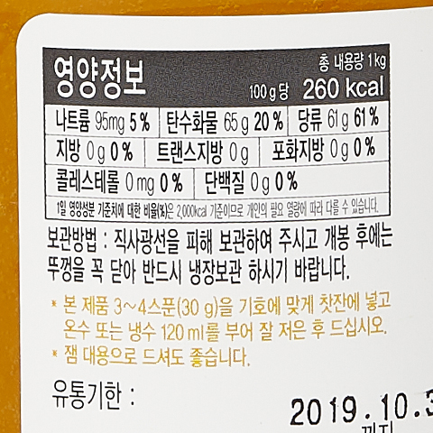 꽃샘식품 꿀한라봉차(1Kg/EA) 이미지