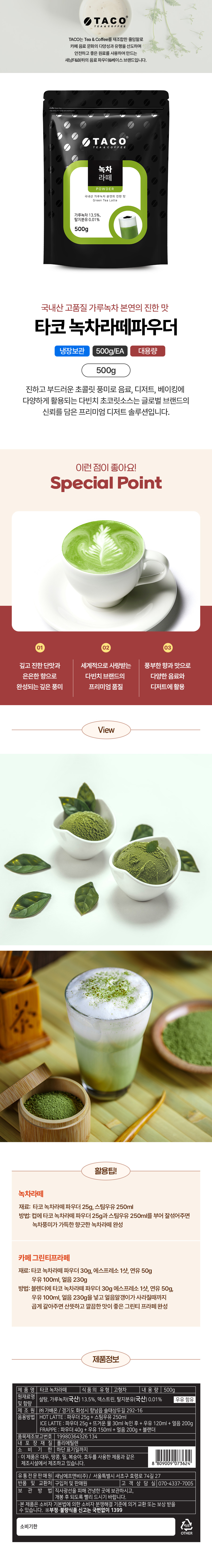 타코 녹차라떼파우더(500g/EA) 이미지